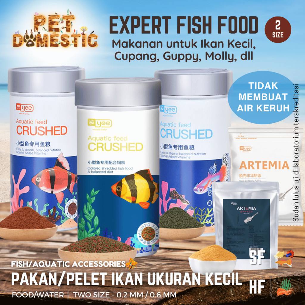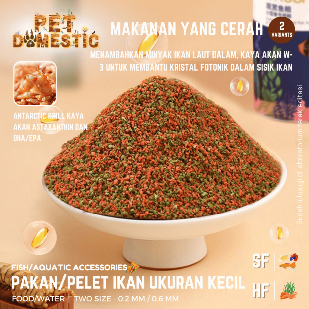 Pakan Pelet Makanan Ikan Hias Kecil Cupang Guppy Molly Tetra Mas Anakan Burayak 0.2mm 0.6mm Pellet Artemia Mini Micro