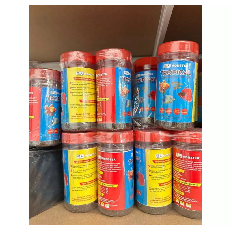1 Lusin - Tropical Monster Pakan Ikan Cupang dan Ikan Hias, Pakan segala Ikan Hias Premium Kemasan 100 Gram