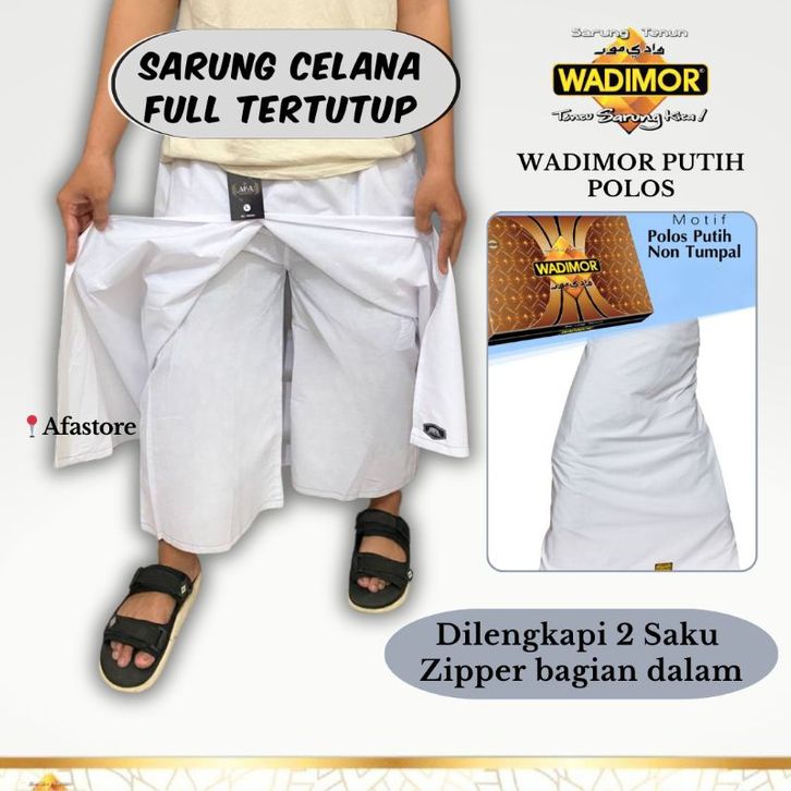 TERBARU SARUNG CELANA WADIMOR PUTIH POLOS FULL TERTUTUP DEPAN BELAKANG DILENGKAPI 2 SAKU ZIPPER /SARWAL /SAROWIL