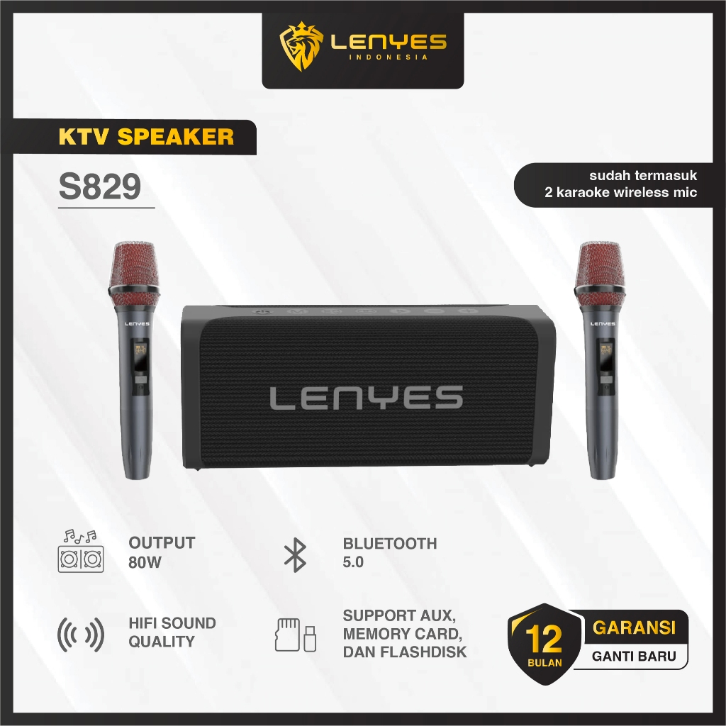 LENYES S829 80W PORTABLE KTV WIRELESS SPEAKER + MICROPHONE KARAOKE BLUETOOTH 5.0 ORIGINAL LENYES OFFICIAL STORE