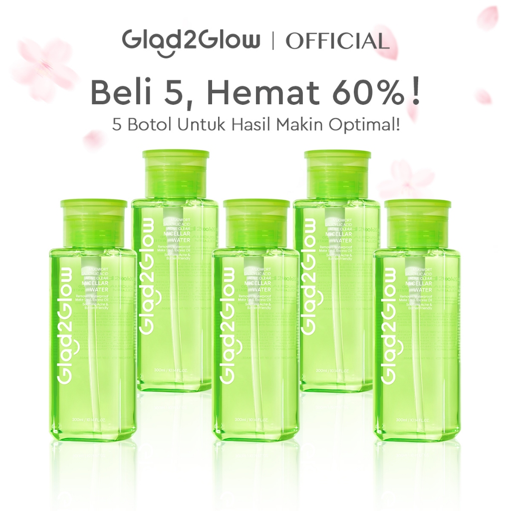[Mall] [Hemat 5PCS]Glad2Glow Micellar Water 300ml cleansing oil cleansing balm micellar centella salycilic acid remover