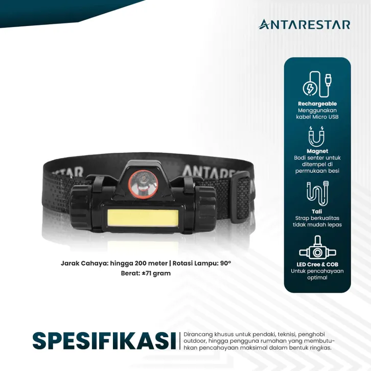 SENTER LED SUPER TERANG KEPALA MINI HEADLAMP RECHARGEABLE PLUS MAGNET LAMP CAMPING