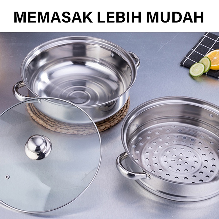Steamer Stainless Panci Kukus 2 Tingkat 1036-Steamer Stainless Steel