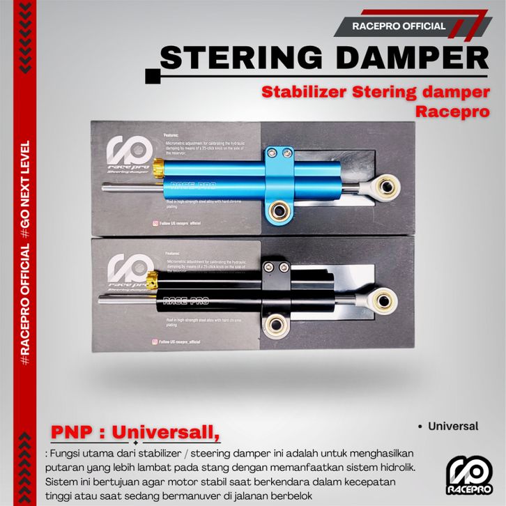 PROMO STERING DAMPER RACEPRO STABILIZER STANG RACEPRO STERING DAMPER CBR R15 R25 NINJA ORIGINAL RACEPRO