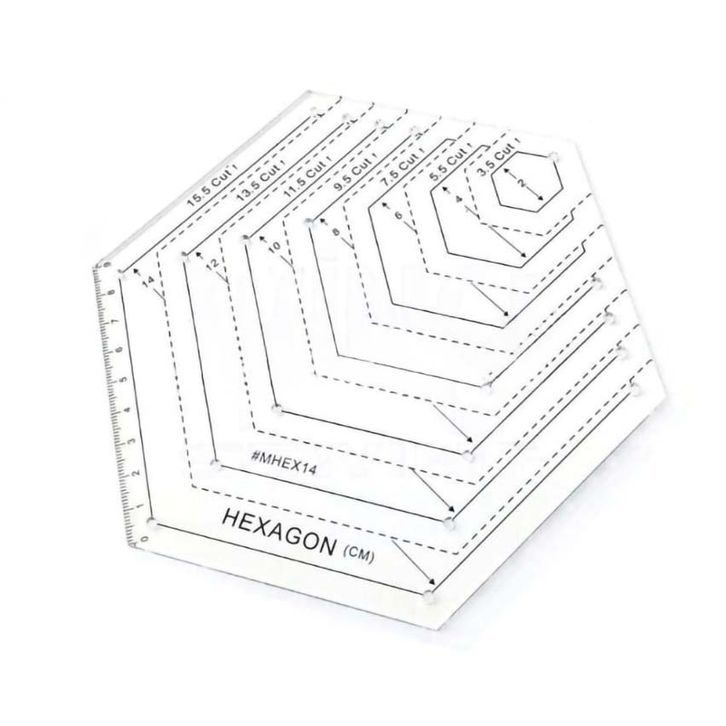 TERLAKU Penggaris Jahit Pola Hexagon Skala 15.5cm Segi 6 Mika Akrilik Acrylic egers