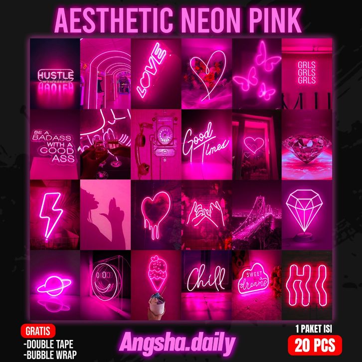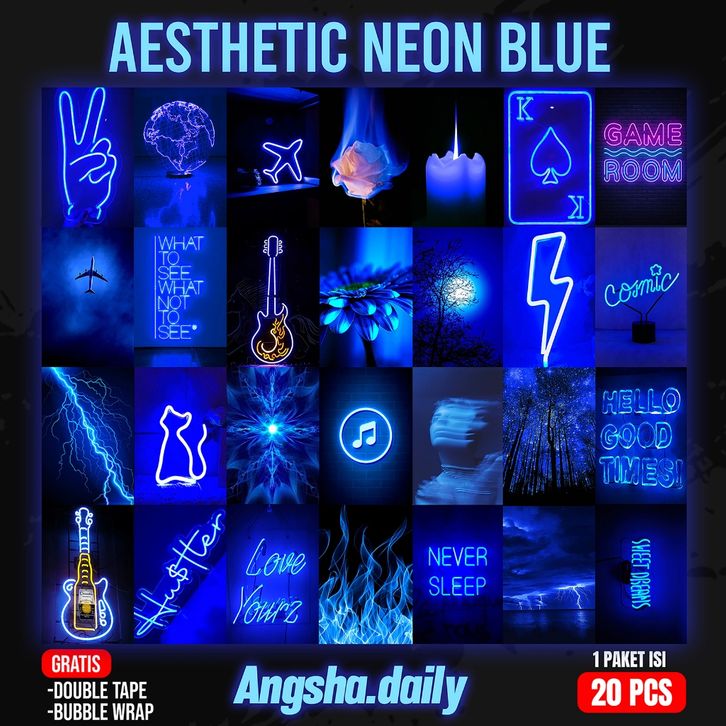 TERMURAH Poster Aesthetic Neon Blue Pink Dekorasi kamar hiasan dinding ukuran a5 odikb