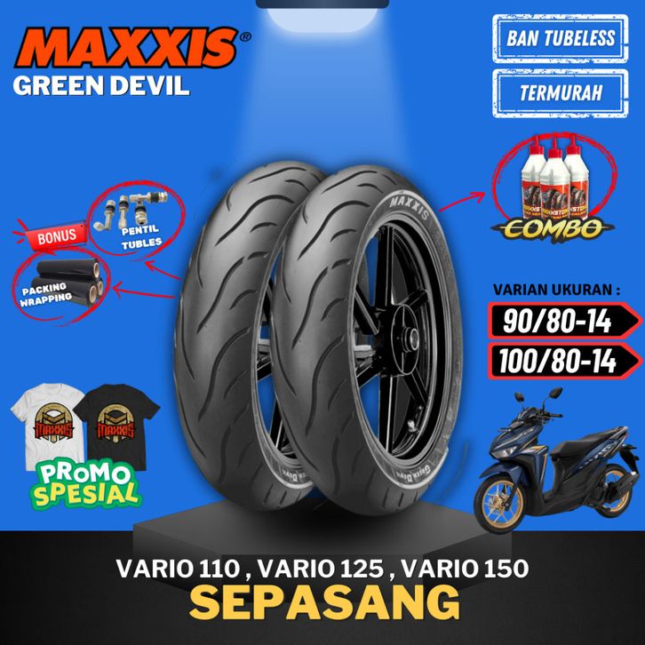 [PAKET SEPASANG MURAH] BAN MAXXIS GREEN DEVIL RING 14 ( 90/80-14 & 100/80-14 ) / BAN MAXXIS RING 14 / BAN LUAR MOTOR MAT