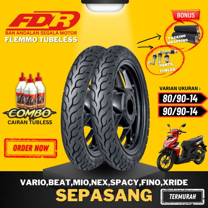 [PAKET SEPASANG] BAN FDR FLEMMO RING 14 / BAN FDR FLEMMO TUBELESS TUBLES RING 14 ( 80/90-14 / 90/90-14 ) BAN FDR TUBLES