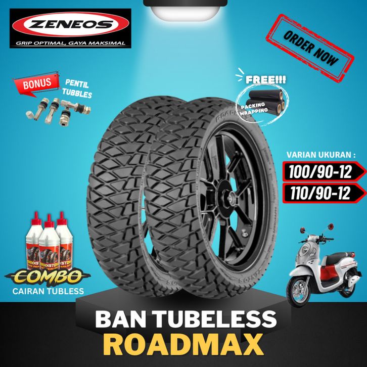 [SEPASANG MURAH] BAN ZENEOS ROADMAX ( 100/90-12 & 110/90-12 ) RING 12 / BAN TUBELESS ZENEOS RING 12 BAN MOTOR SCOPPY / B