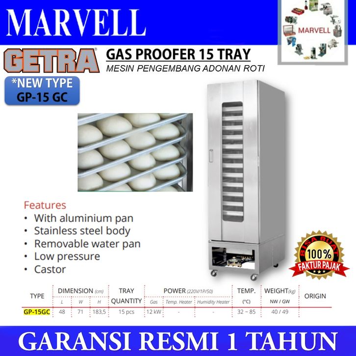 GAS PROOFER GETRA GP-15GC MESIN PENGEMBANG ADONAN ROTI 15 TRAY RESMI