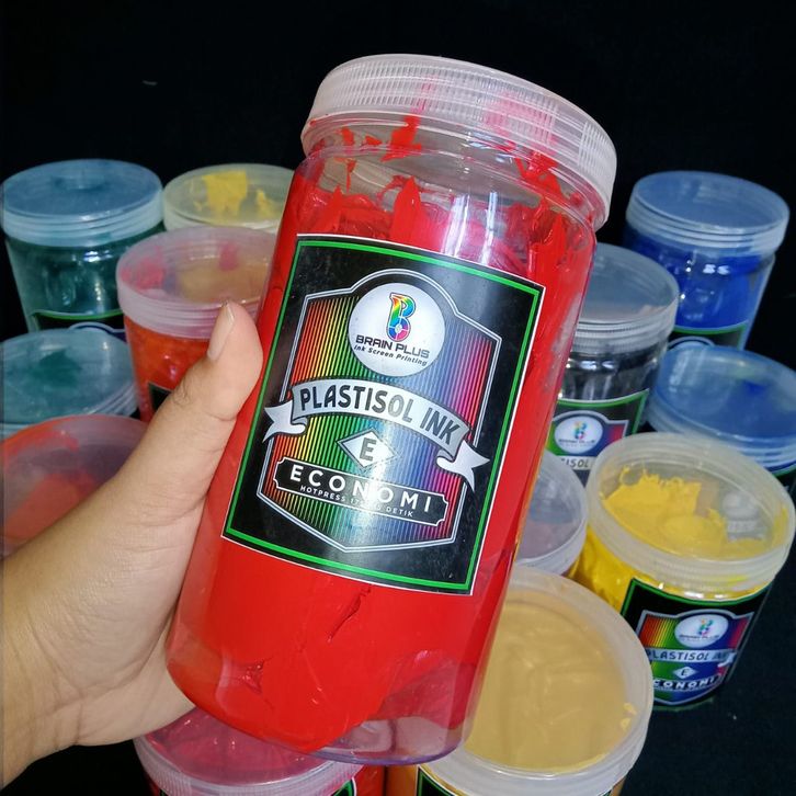 TERLARIS Tinta Sablon PLASTISOL ECONOMY Brain Plus MERAH 1kg unabb