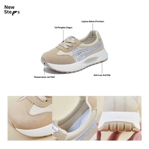 (Freebox) Sepatu Sneakers Wanita Keren Kekinian Desain Korea Sol PU Nyaman Dipakai Seharian Model New Steps NS073 36-40