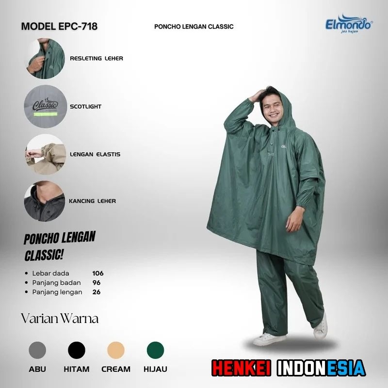 Jas Hujan Dewasa ELMONDO Setelan Pria Wanita Mantel Hujan Jumbo
