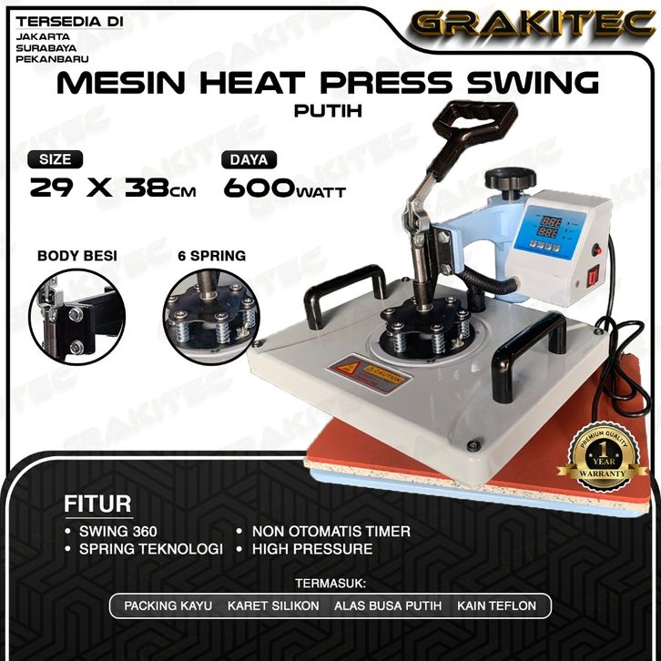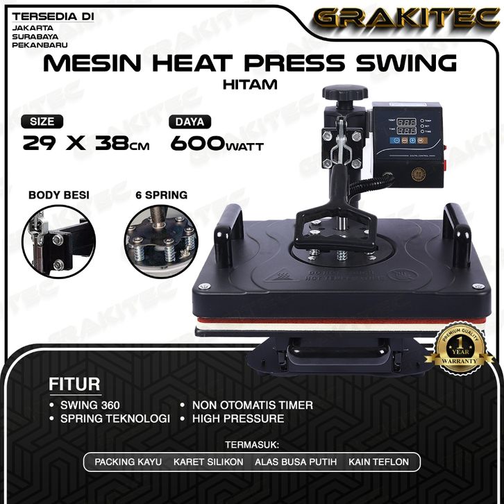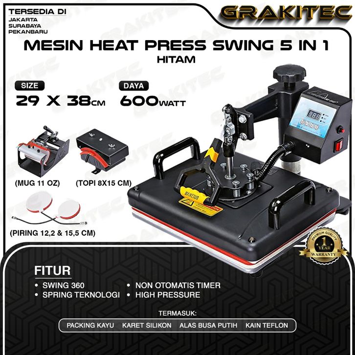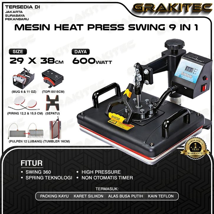 TERBARU Mesin Press Sablon Kaos Swing 29x38 600 Watt Multifungsi Combo All in One 3in1, 5in1, 9in1 Sliding -