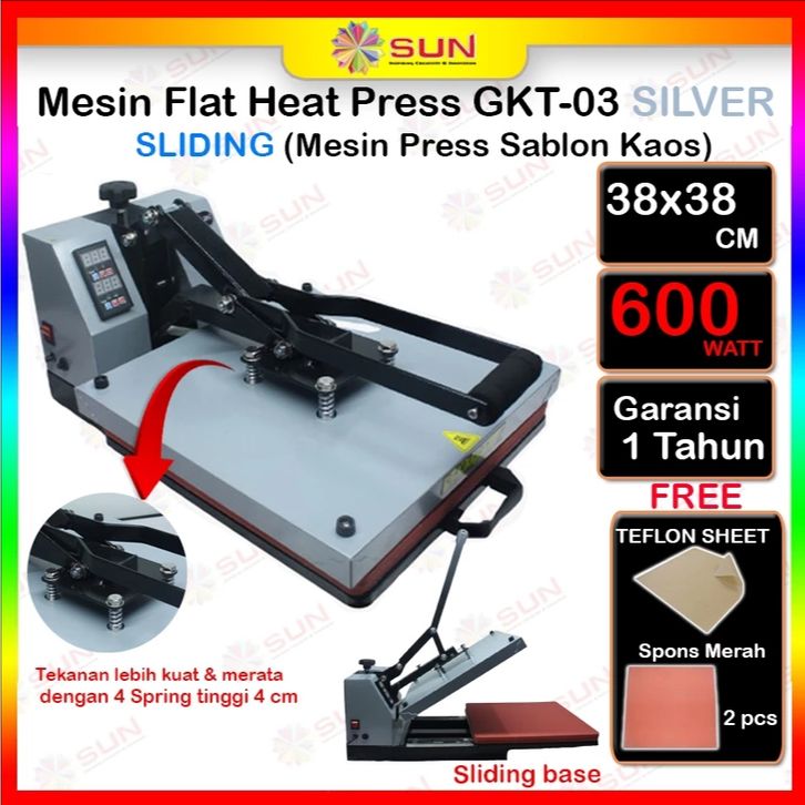 TERLAKU Mesin Press Sablon Kaos 38x38 Digital Premium GKT-01 / GKT-02 / GKT-03 600 Watt / 900 Watt untuk Kaos,