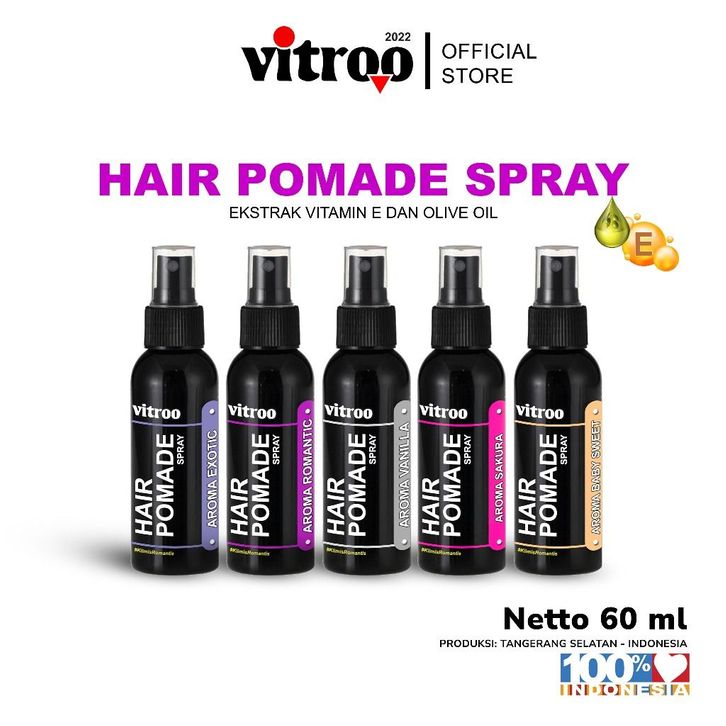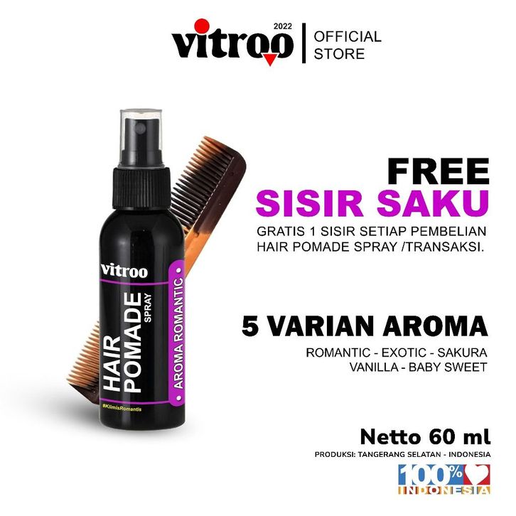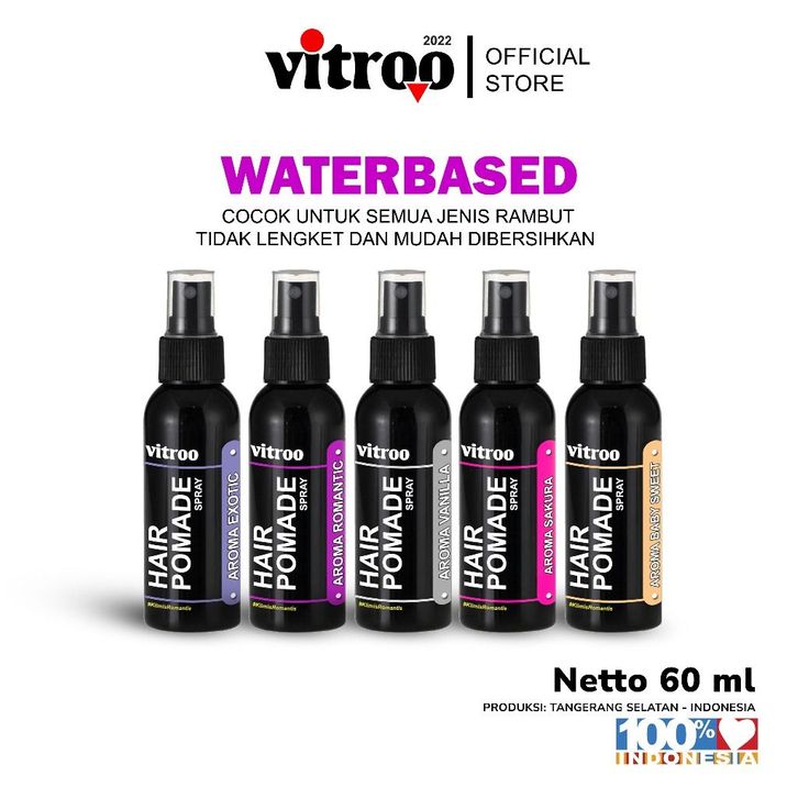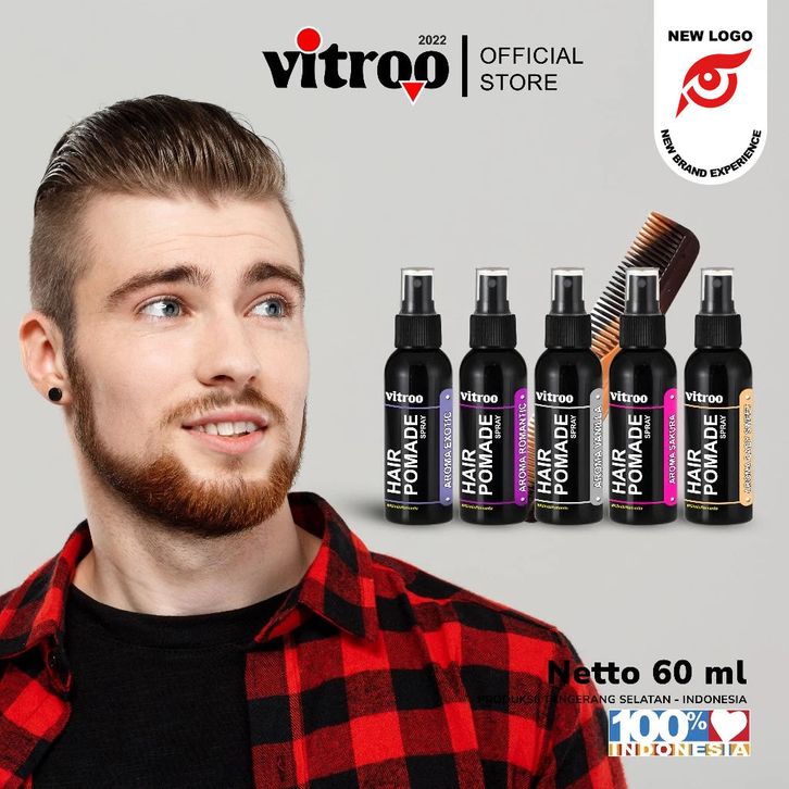 Vitroo Hair Pomade Spray Pomed Rambut Semprot Waterbase Minyak Rambut Pria Hair Styling Natural FREE Sisir Saku