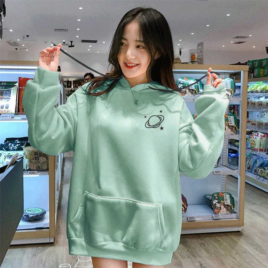 Sweater Hoodie Wanita Remaja Dewasa Viral Planet Terbaru Fleece Tebal Premium