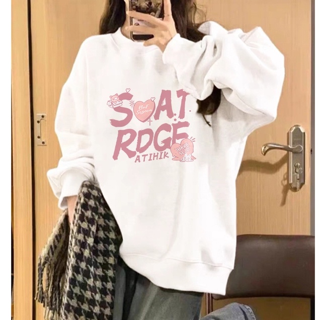 A0612 Forteid Sweater Lengan Panjang Pink English Letters Korean Style/Hoodie/Baju Wanita/Switer Wanita Hoodie Korean S
