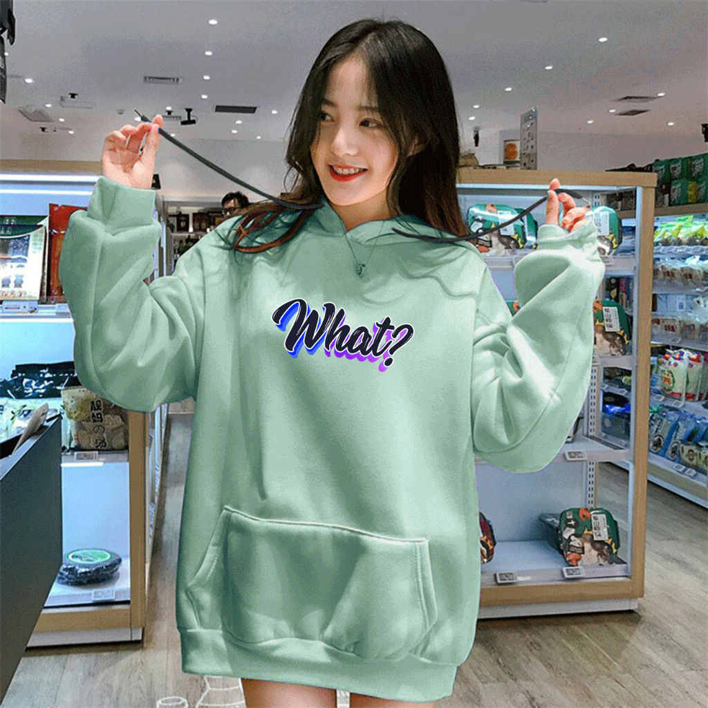 Sweater Wanita WHAT Hoodie Remaja Dewasa Sweater Cewe Hoodie flecce Murah Hitam Coksu Dusty Taro Mint