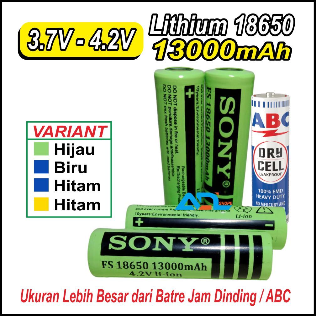 CICILAN TANPA DP Baterai Charger, Senter, Powerbank, , Lithium 18650 3.7V - 4.2V 13000mAh Hitam, Kuning, HIjau