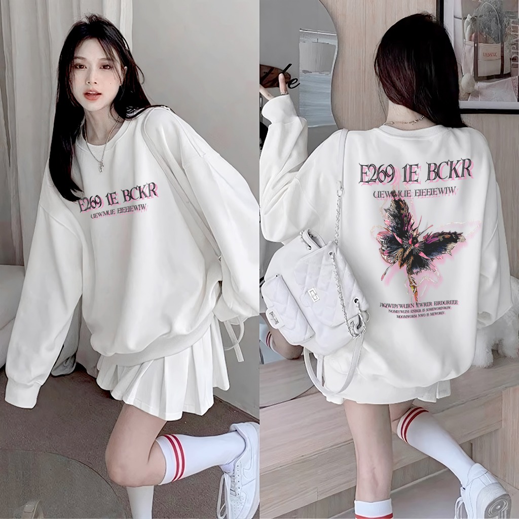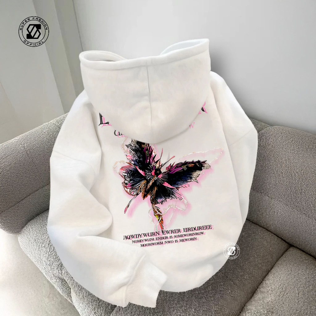 SS - Oversize Hoodie Wanita Korean Style Sweatshirt Butterfly Baju Wanita Dan Pria Sweater el Loose Fit Gothic Kekinian