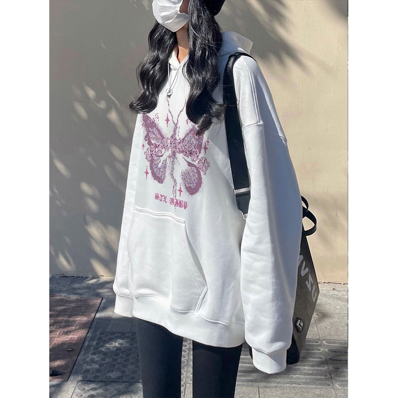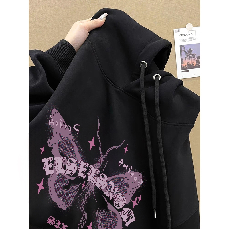Forteid Oversize Hoodie Wanita Korean Style Oversize Hoodie Sweater (cetakan kupu-kupu yang lucu) Baju Wanita Kekinia