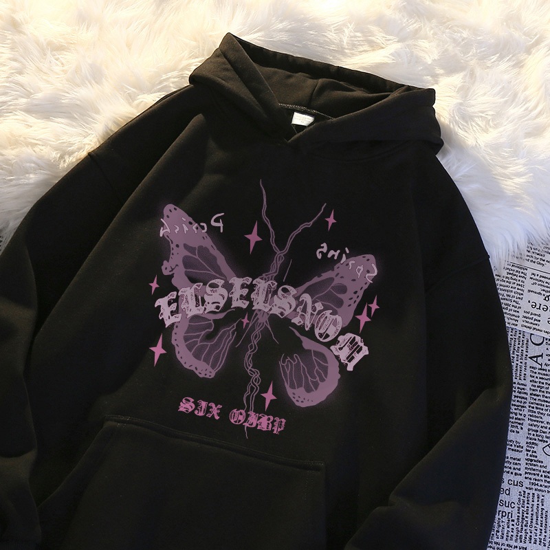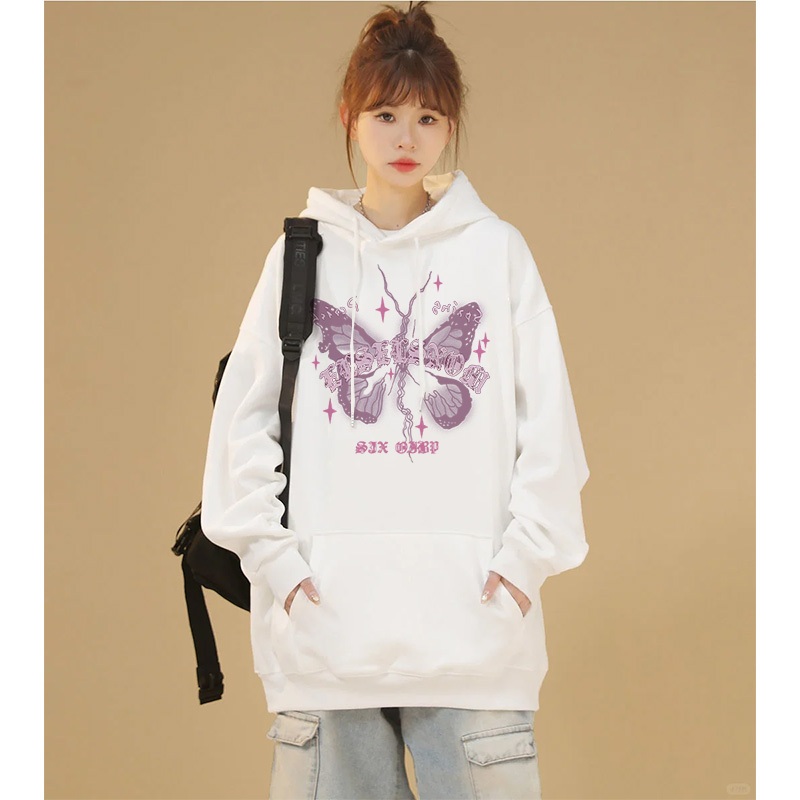 ✅ Fastfash Sweater Hoodie Wanita kupu-kupu ungu Baju Atasan Oversize Switer Korean Style