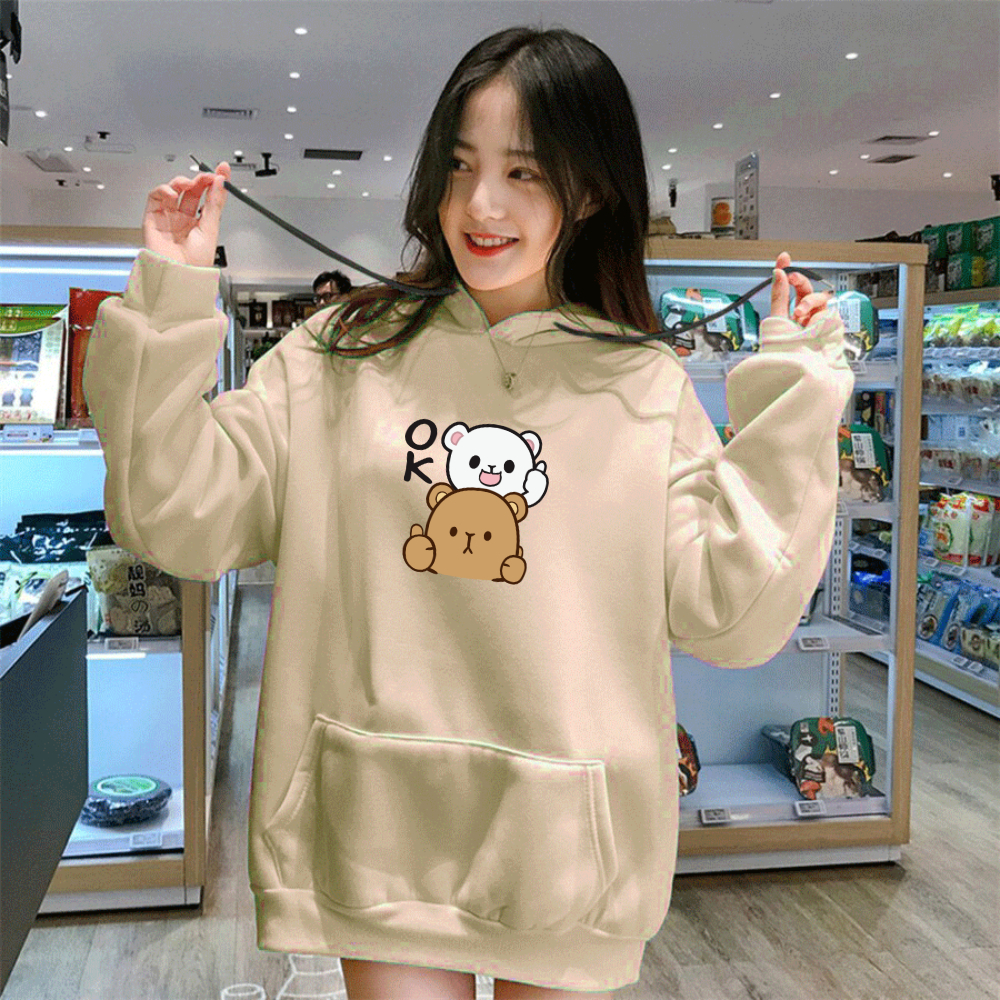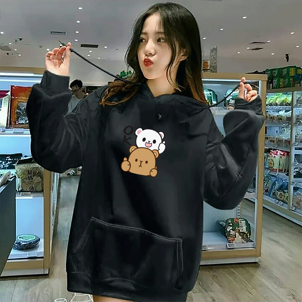 Sweater Hoodie Wanita Remaja Dewasa Keren Panda OK Bahan Fleece Tebal Premium Gratis Ongkir