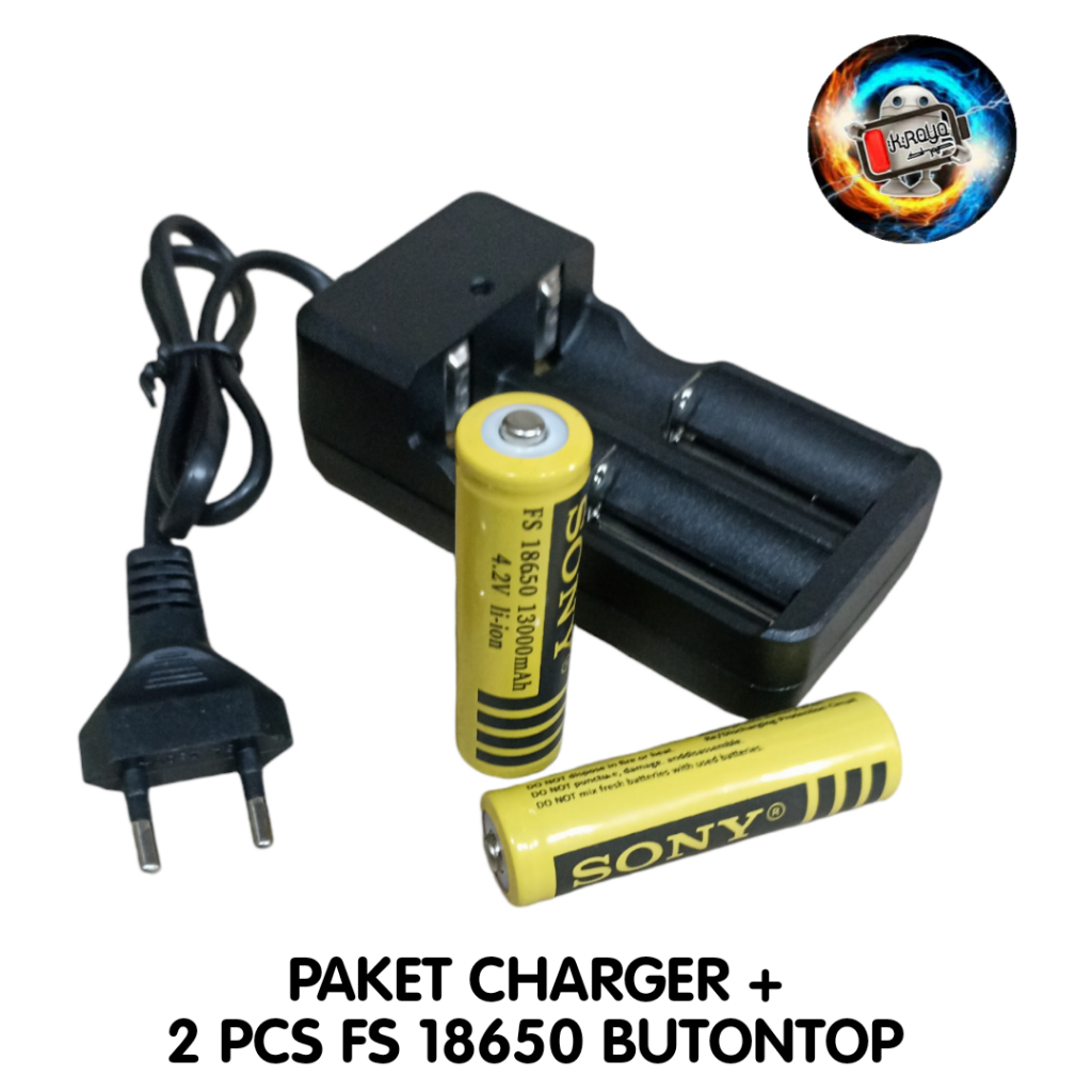 CICILAN TANPA DP Charger + 2 Batterai 18650 Kuning Li-ion 4.2v - 13000mAh