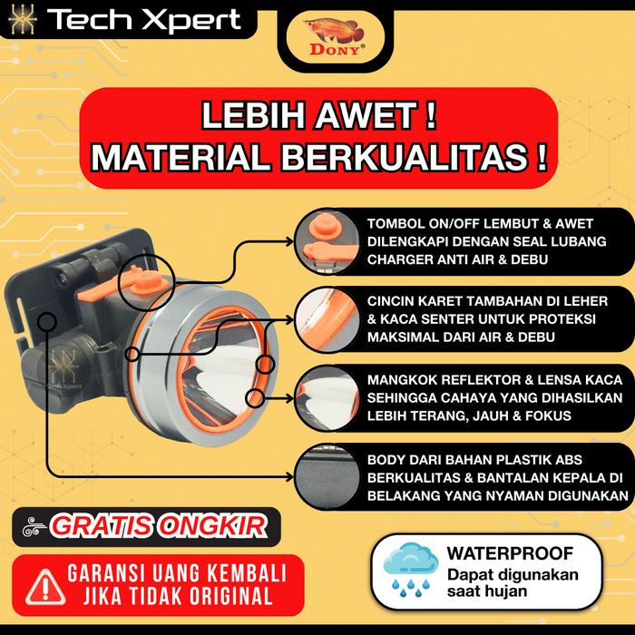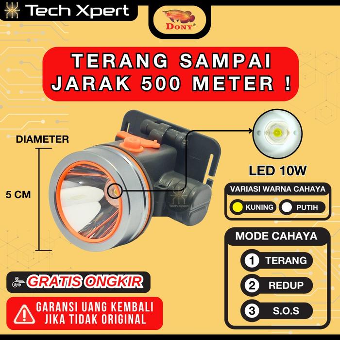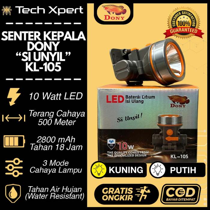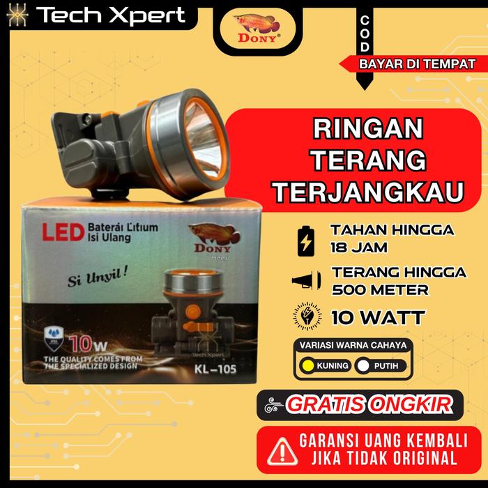 SENTER KEPALA DONY LED 10 WATT KL-105 SI UNYIL CAHAYA TERANG KUNING & PUTIH ANTI AIR Headlamp