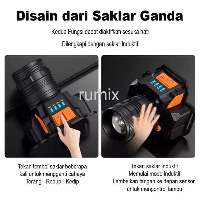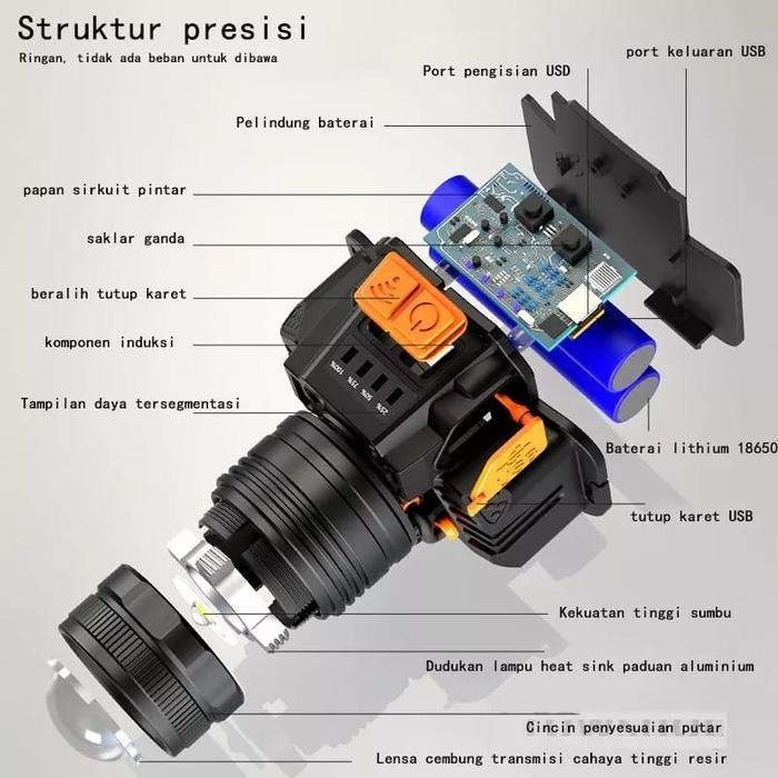 Senter Kepala Led Glare Sorot Zoom Isi Ulang Headlight Head Lampu