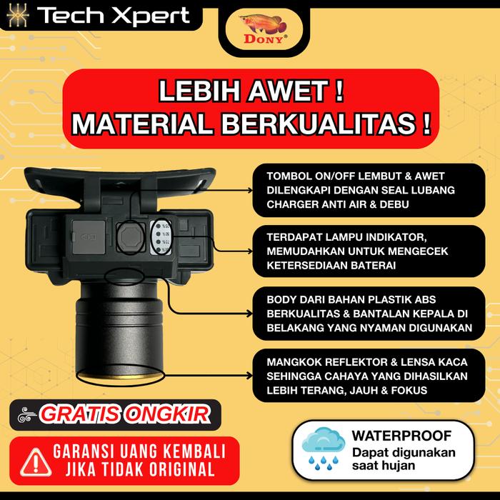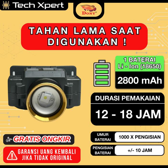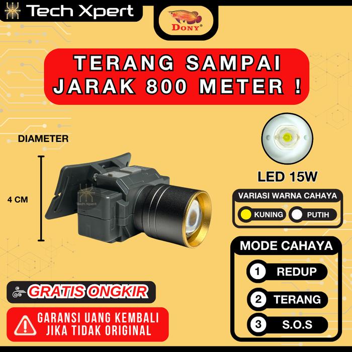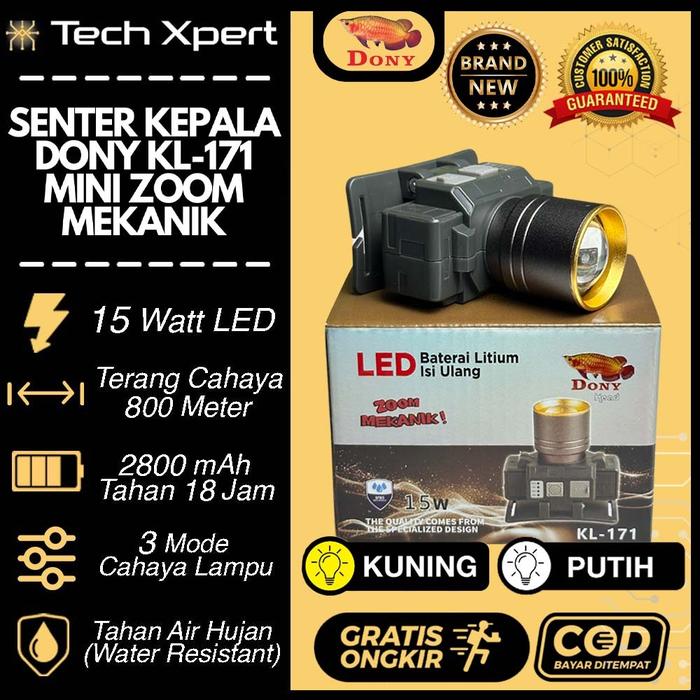 SENTER KEPALA LED DONY 15 WATT KL-171 "MINI ZOOM MEKANIK" ORI ANTI AIR TAHAN LAMA OUTDOOR