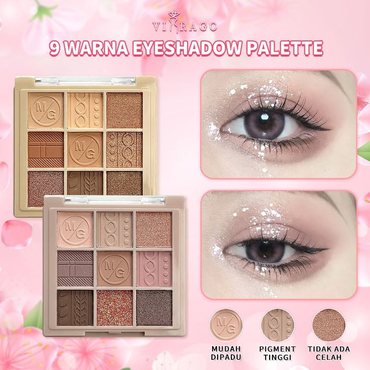 VIRAGO 9 Warna Eyeshadow Palette Make Up Pallete Eyeshadow Multiple Face Blush Highlighter Contour Eyeshadow Palette