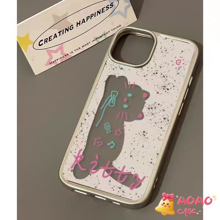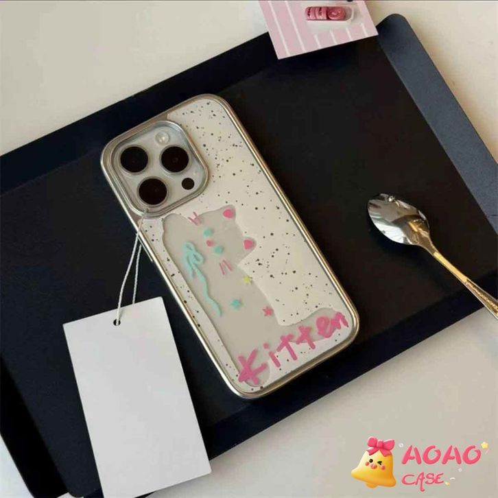 Case HP Untuk IPhone 11 12 15 13 14 Pro Max 7Plus XR 8Plus 7 8 Plus X XS MAX SE 2020 Anak Kucing Kartun Lucu Transparan