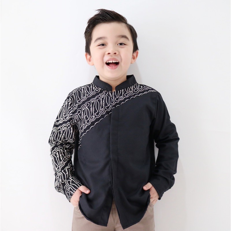 Yobebee Kemeja Batik Tangan Panjang Anak Laki Laki Usia 2 4 6 8 10 12 Tahun Baju Atasan Kids Casual Formal Katun Kemeja