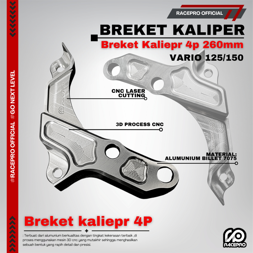 RACEPRO Breket Kaliper 4 Piston 260 MM Axial Vario 125/150 Led old Led New Kzr Breket Caliper Vario
