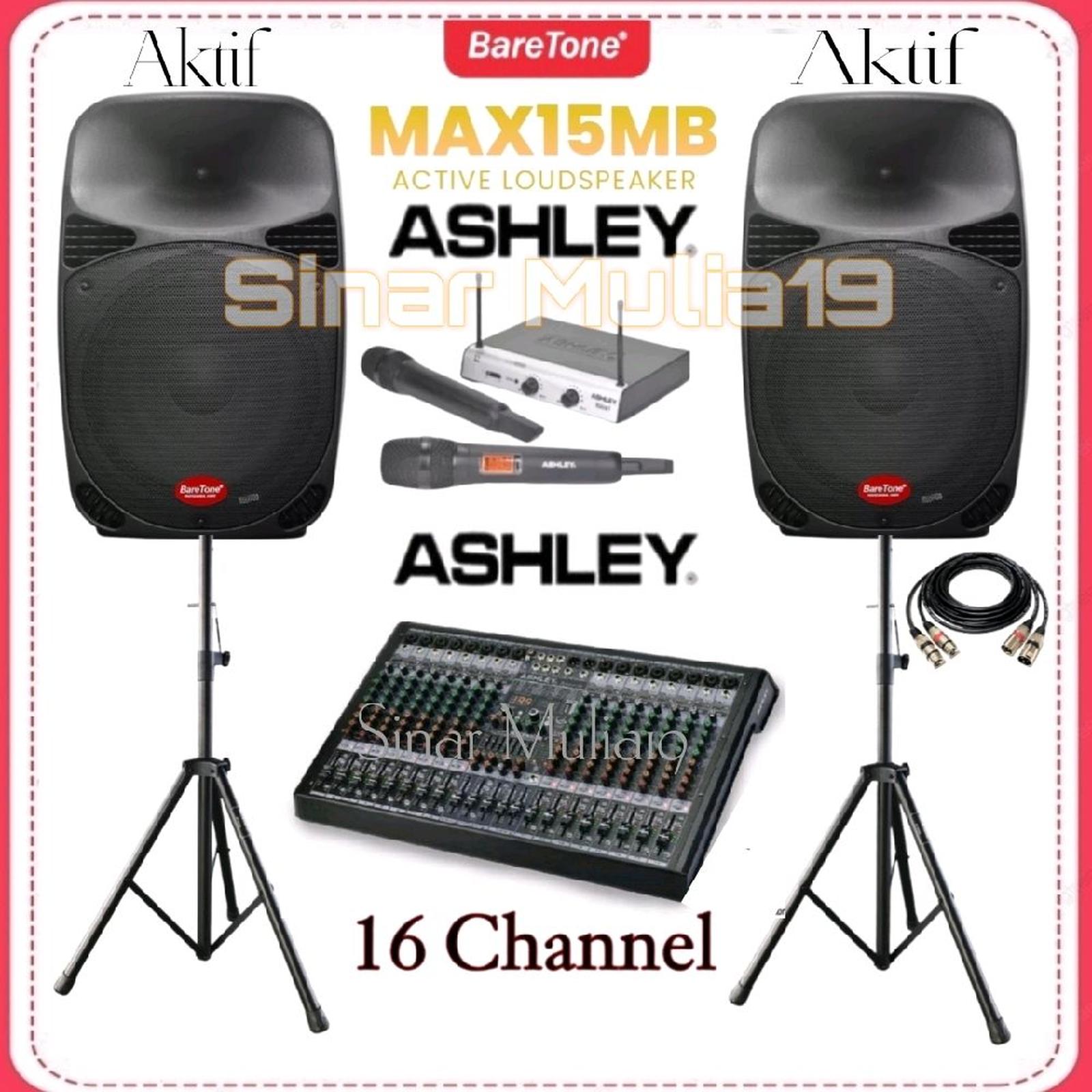 Paket Sound System Speaker 15 Inch Aktif BareTone Mixer Ashley 16 Ch Original Bluetooth