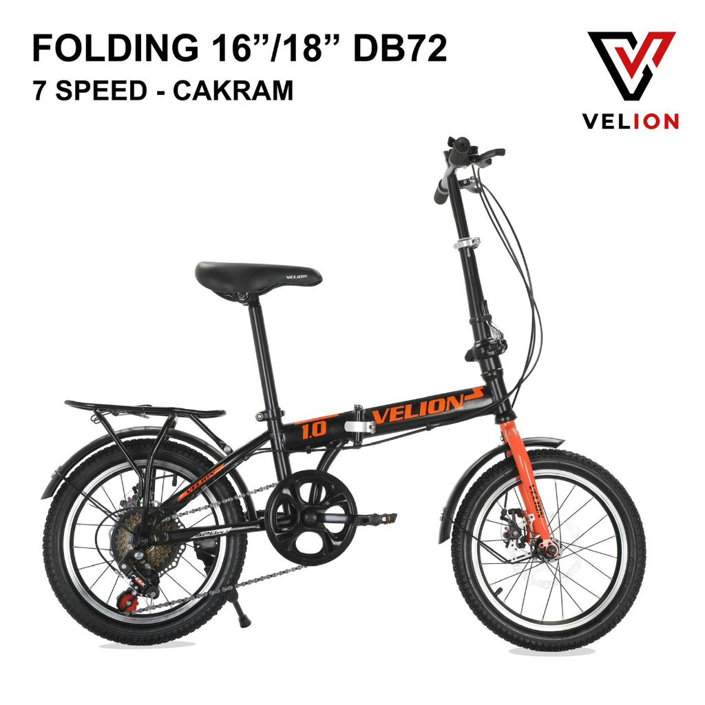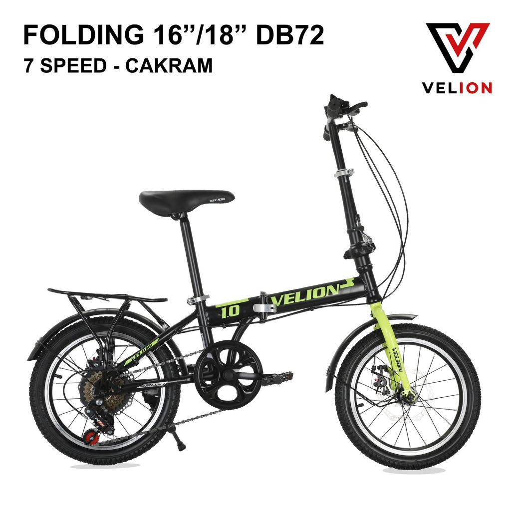 TERLARIS SEPEDA LIPAT VELION FOLD 16" INCH / 18" INCH DB72 / DB74 DISCBRAKE 1X7 SPEED SEPEDA LIPAT DEWASA