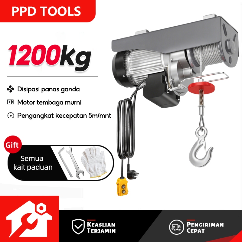 PPD Kerekan Listrik Tali Kawat Dapat Mengangkat 1200kg Angkat 20m Kecil Derek Kerekan Dalam Di Luar Ruangan Derek