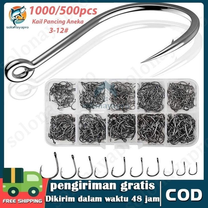 Kail Pancing Aneka Set 1000 Pcs Kail Pancing Aneka Ukuran Bahan Baja Karbon Dengan Tali Pengait/Fishing Hooks Set High