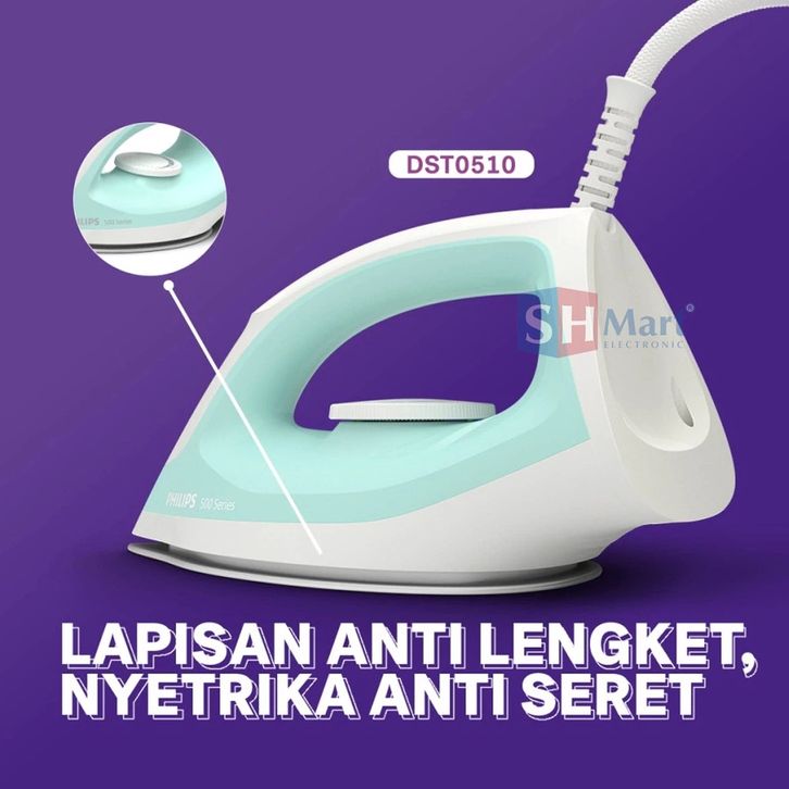 SETRIKA PHILIPS DST0510 DRY IRON HIJAU GARANSI RESMI