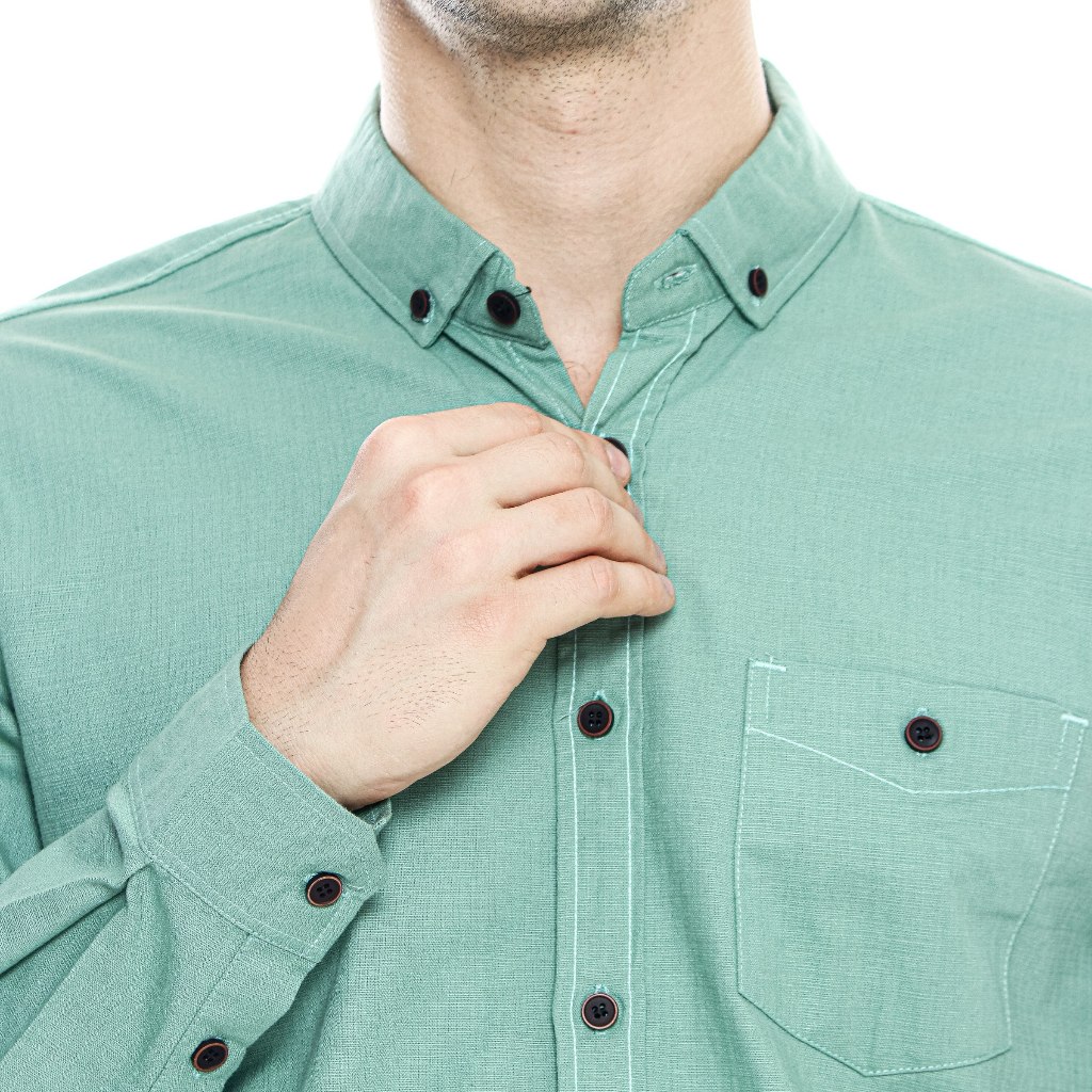 Rivilla Kemeja Casual Pria Sage Green Lengan Panjang Slim Fit
