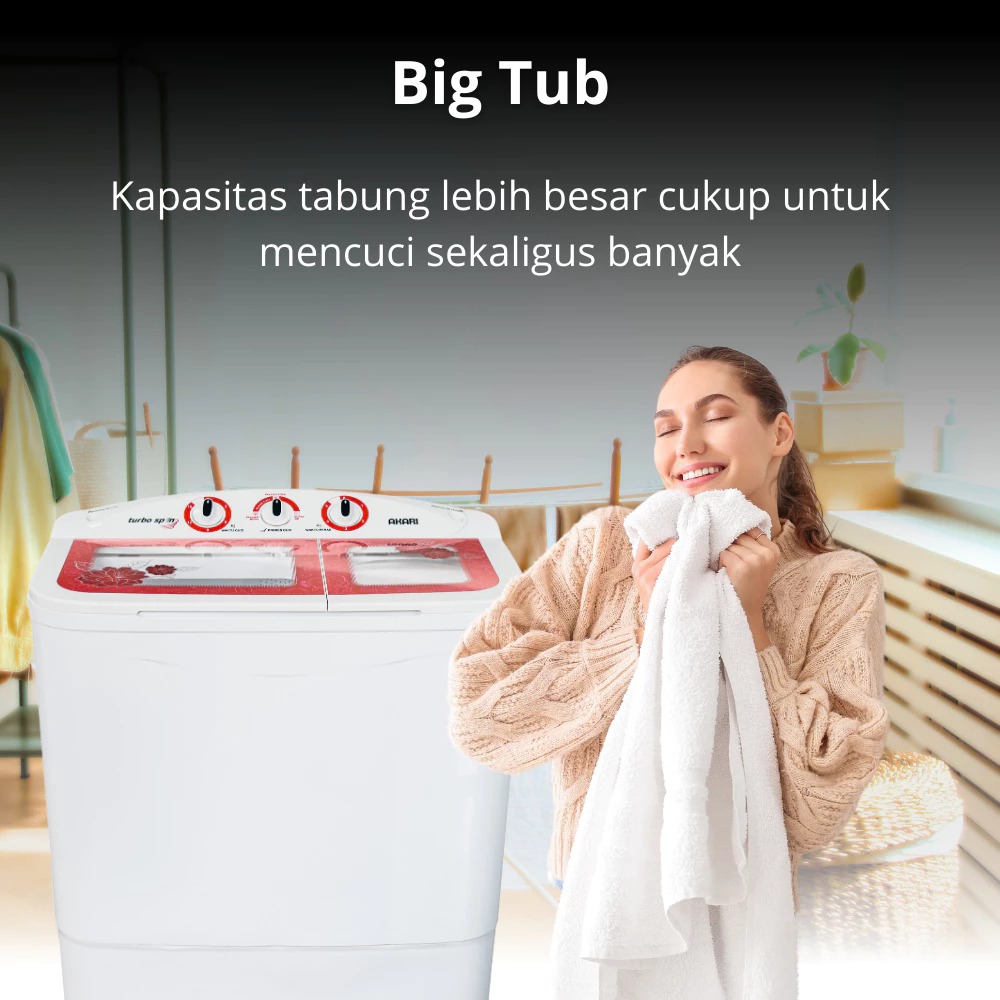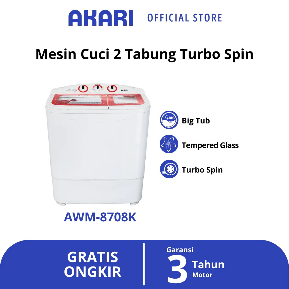 Mesin cuci - mesin cuci 2 tabung - AKARI Mesin Cuci 2 Tabung Artistik Panel Kaca AWM-8708K TOSKA