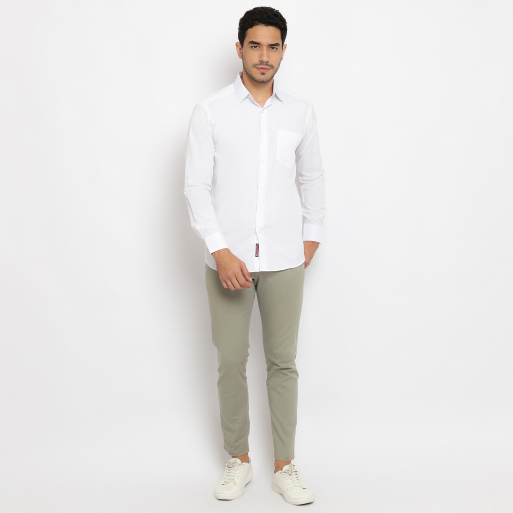 Kemeja Polos Kemeja Formal Pria Atasan Pria Lengan Panjang Putih OLR003