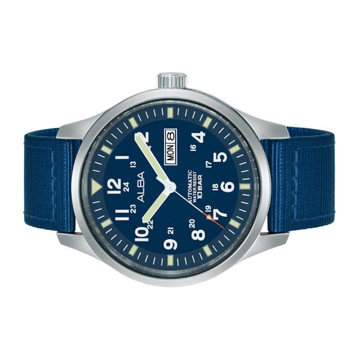 Alba Mechanical Jam Tangan Pria Field AL4219 / AL4219X1 Automatic Blue Dial Nylon Strap Watch