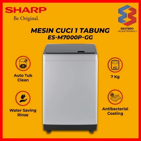 Mesin cuci - mesin cuci 1 tabung - Sharp Mesin Cuci 1 Tabung ESM 7000 PGG 7Kg Mesin Cuci Top Load