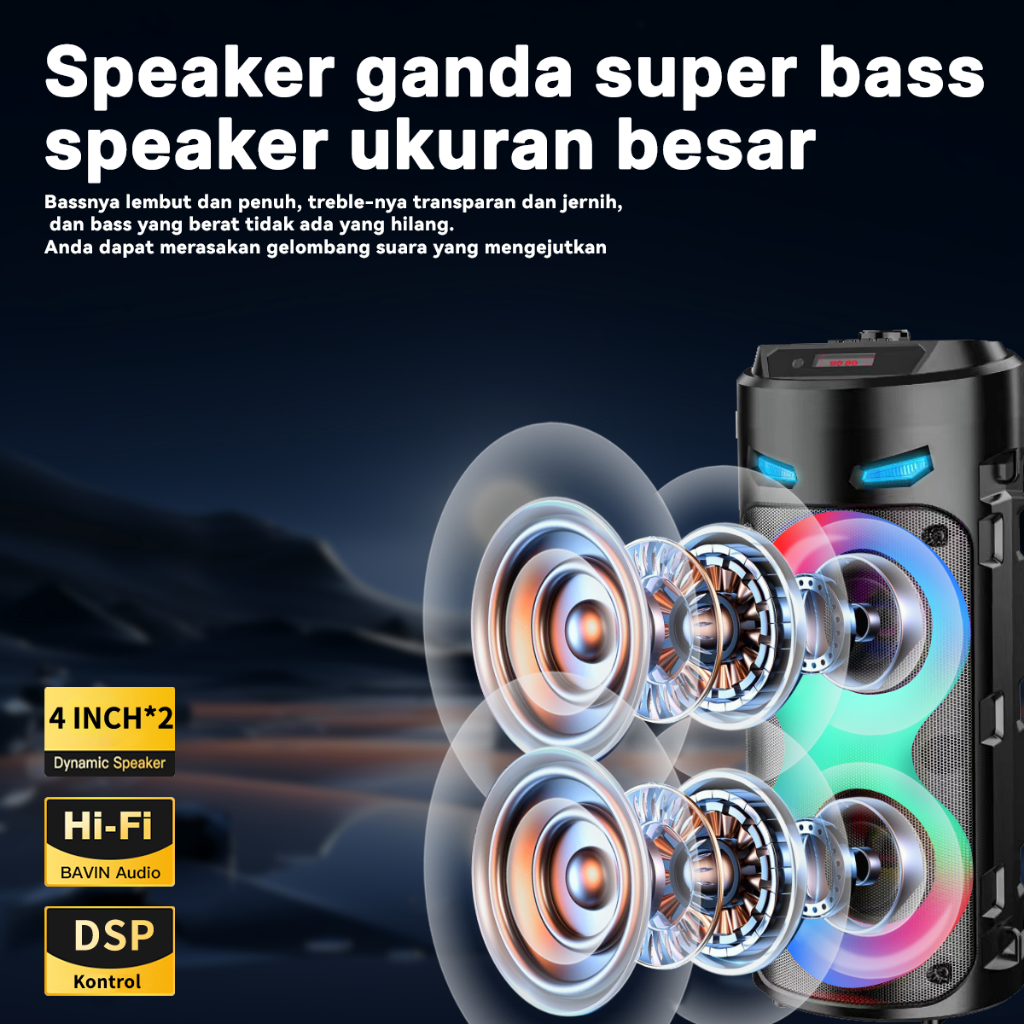 SPEAKER BLUETOOTH KARAOKE BESAR SUPER BASS WITH MIC POLYTRON PROTABLE 8 INCH WIRELESS FULL BASS LAMPU RGB