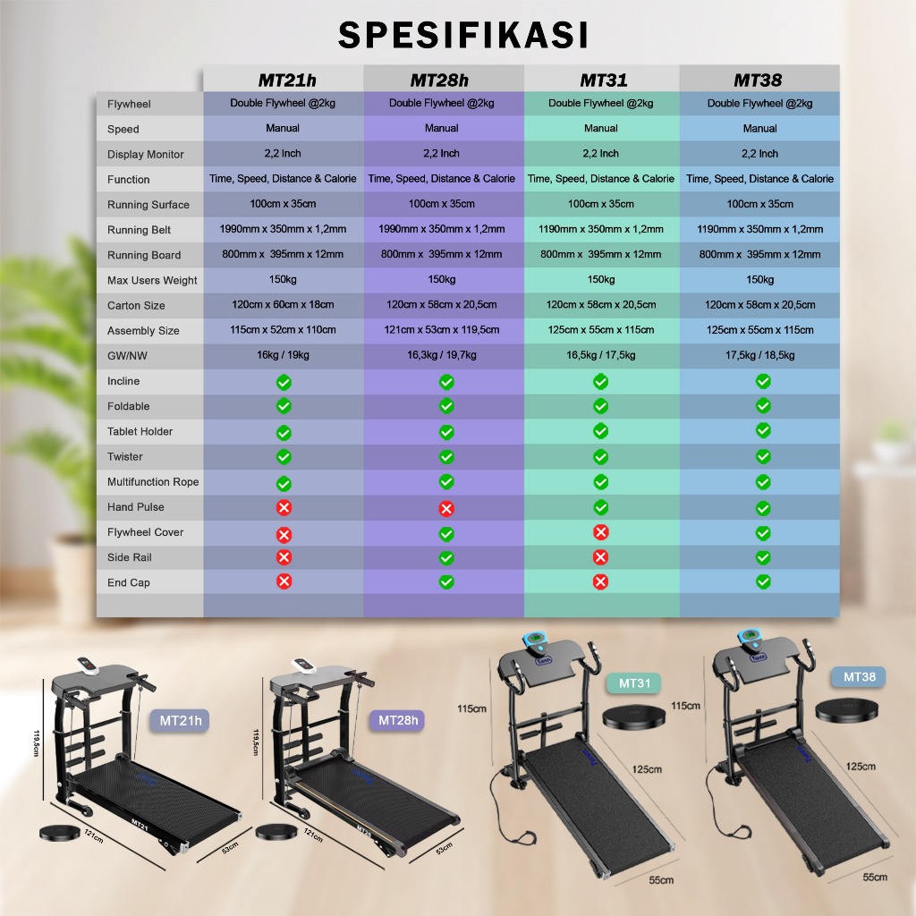 TWEN MT21 MT28 MT31 MT38 Treadmill Tanpa Listrik Treadmill Manual Treadmill Multifungsi Treadmill Lipat Alat Olahraga