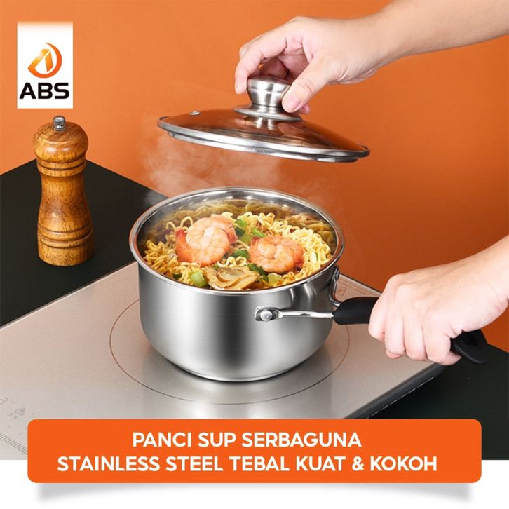 NEW ABS Saucepan Stainless Steel Panci Sup Kuah Anti Lengket Stainless Dengan Gagang 18 dan 20CM edomnh