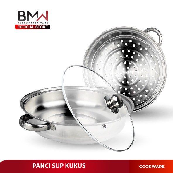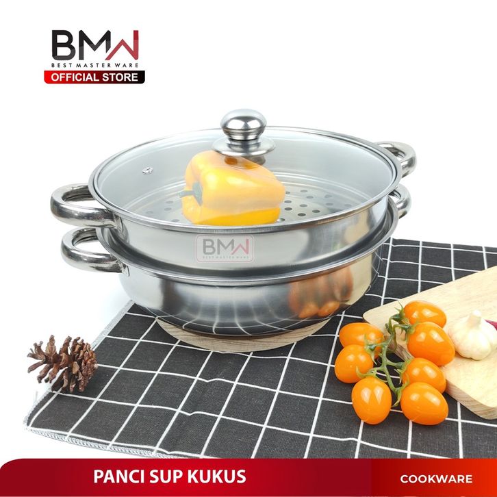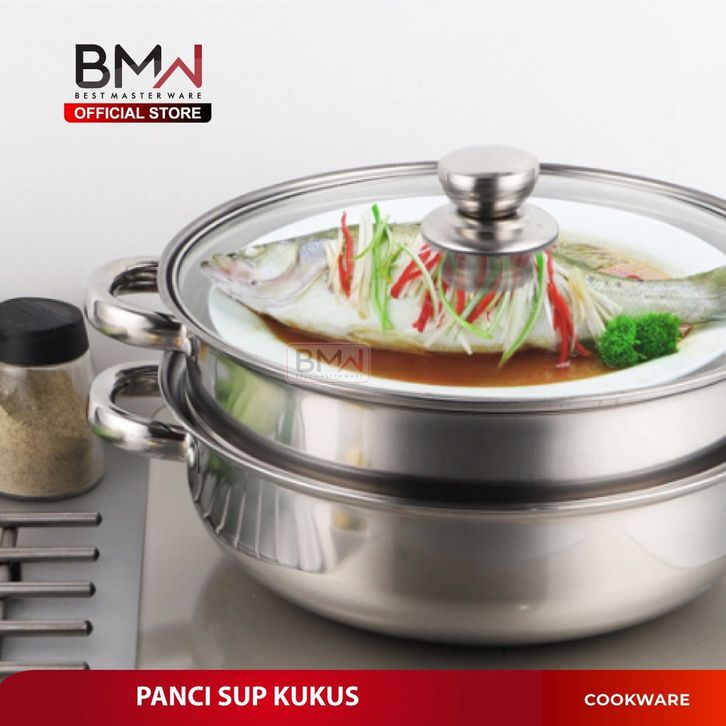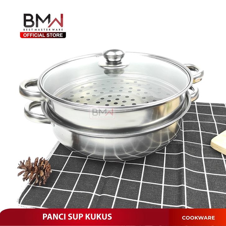 TERLAKU BMW Kitchen Ware - Panci Kukus Set Stainless Steel Panci Sup Steamer Ikan Bakpao Siomay 2 Susun 28Cm